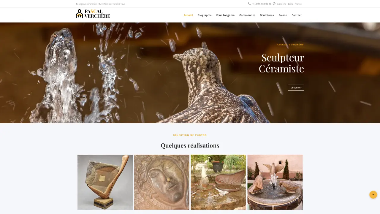 Pascal Verchère est un sculpteur céramiste à Ambierle, dans la Loire, installé depuis 1984 et reconnu pour son travail de la terre et du feu au sein de son atelier, grâce à son four Anagama. Le site que j’ai réalisé pour lui met en avant son univers, ses sculptures céramiques et son savoir-faire unique, afin de valoriser sa présence en ligne.